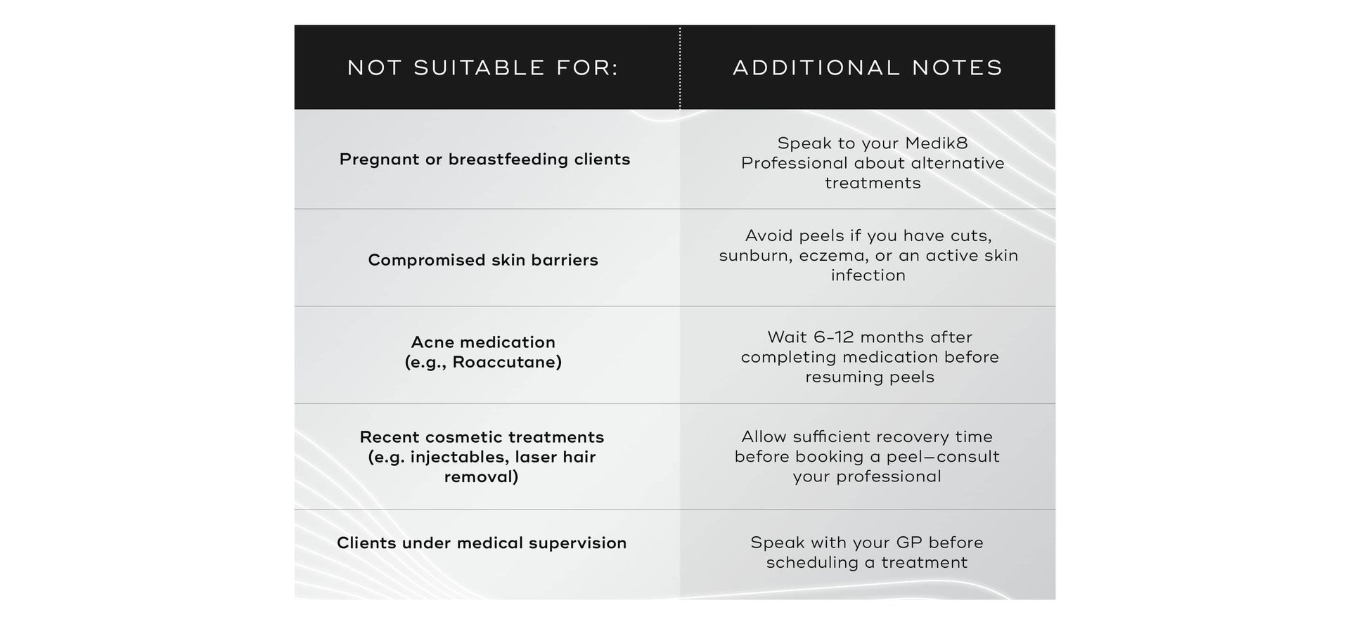 Medik8 peels are designed for most skin types, with a range of intensities, from our Sensitive PHA Peel (ideal for delicate skin) to our mono peels (for stubborn concerns).